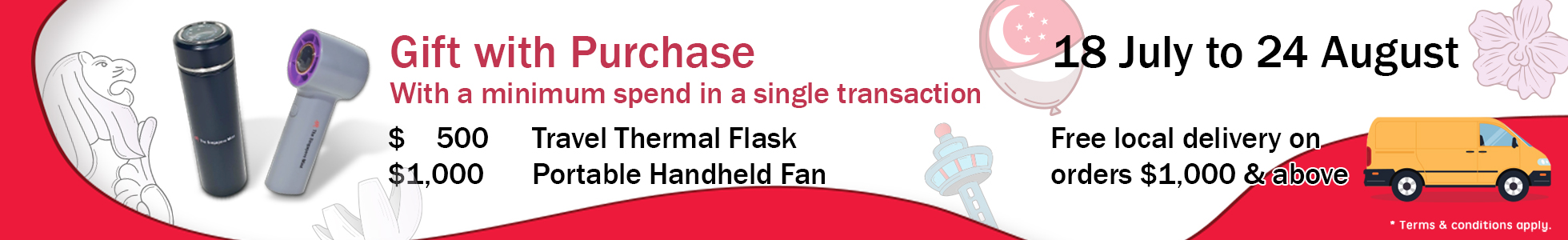 - Spend a minimum of S$500 in a single receipt and receive a FREE Travel Thermal Flask.